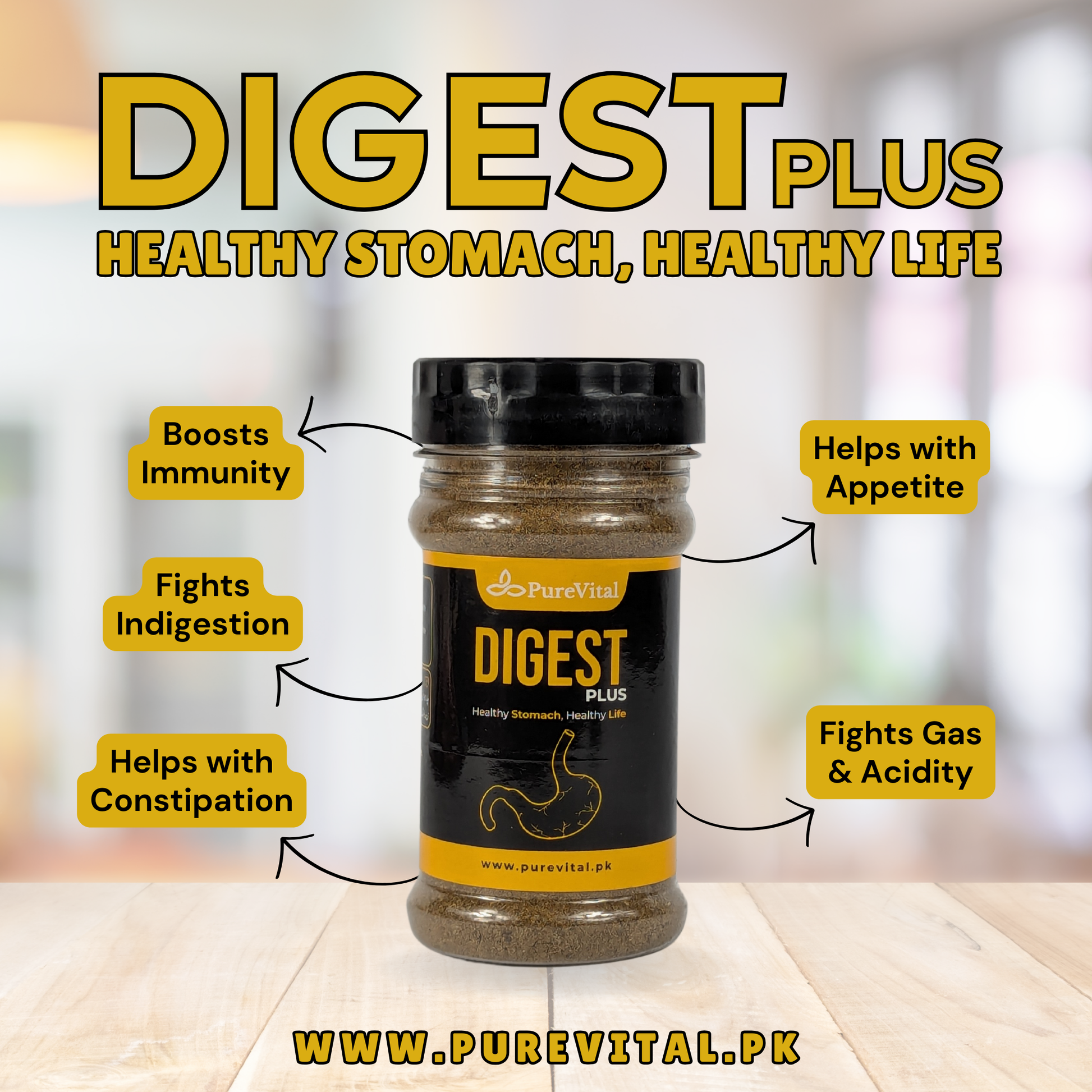 Digest Plus by PureVital is made from natural ingredients to boost immunity and to fight against all the issues related to stomach like Loss of Appetite, Indigestion, Weak Stomach, Constipation, Severe Gas, Acidic Belching and Chest Burn.